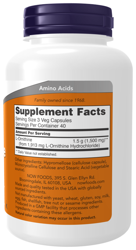 L-Ornithine 500 mg, 120 капс_NOW