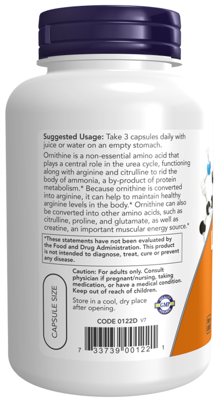 NOW L-Ornithine 500 mg, L-Орнитин 500 мг, 120 капсул