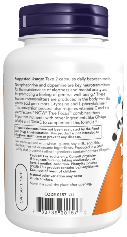 True Focus - это высококачественный препарат от компании Now Foods. Продукция производится в Америке и выпускается в оптимальном количестве таблеток, в упаковке 100 капсул. Это позволяет принимать качественные препараты на протяжении целого месяца.
